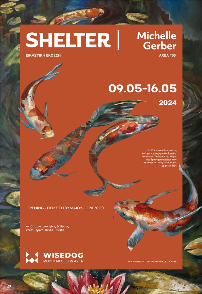 personal journey as a woman, mother and artist. 50% of the proceeds from the sales of the works will be allocated to the Diotima center in Athens, an organisation very active in the prevention and treatment of gender-based violence. Michelle says: “ Every time I learn about another femicide in Greece, I realize how important it is to talk about domestic violence and abuse. We have to recover loudly so that others do not have to suffer in silence.”